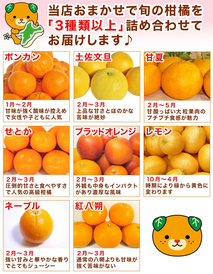 旬な柑橘を一度にいろいろ楽しめる。3種類の果実が入っています♪愛媛県産、当店おまかせ必ず3種類以上が入ります。